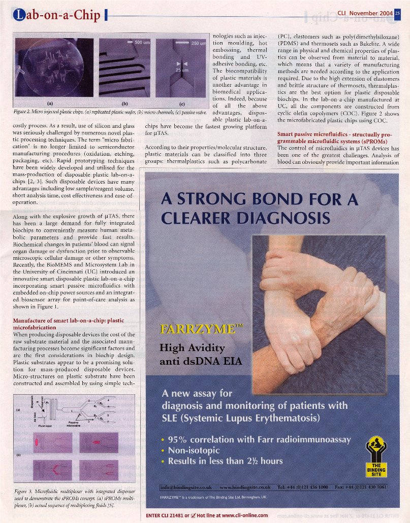 "Smart disposable plastic lab-on-a-chips for POC clinical diagnostics": Clinical Laboratory International